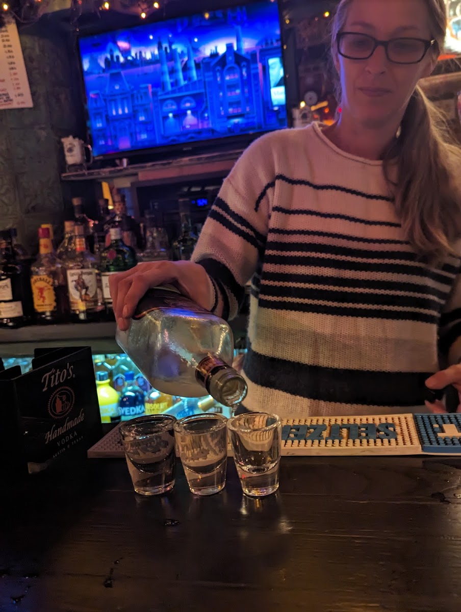 There’s an honest, unpretentious spirit here. While the exterior might suggest a modest dive, inside you’re met with a space thoughtfully changed to mark the seasons and local celebrations, adding a quietly festive touch. The bartenders play a central role, not just mixing drinks but weaving connection into the experience, greeting guests with familiarity and a professional grace that encourages lingering conversations over mugs of beer, refreshing sips of Rumple Minze, or a cold Twisted Tea in hand.